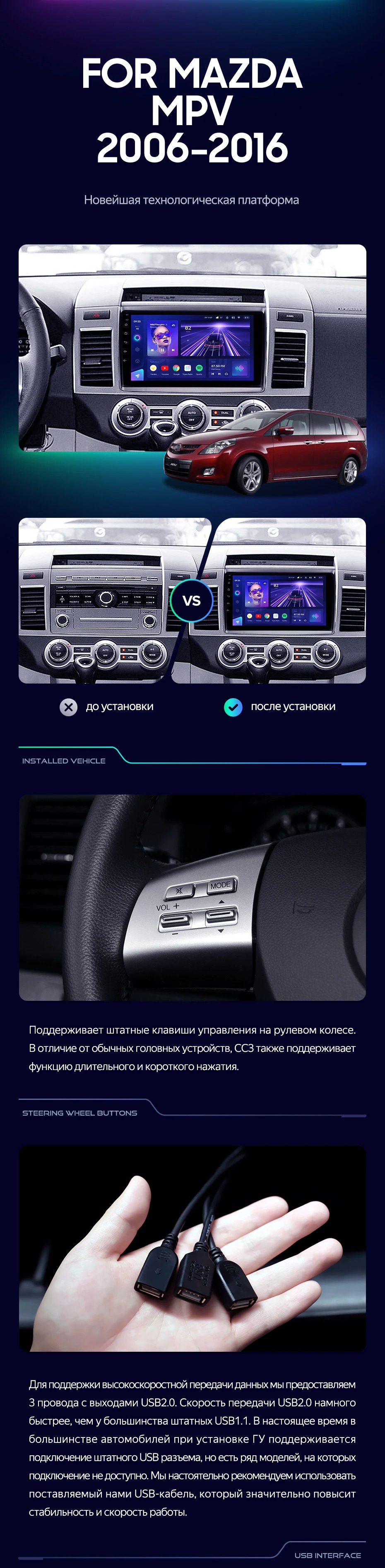 Штатная магнитола Teyes CC3 2K 4/32 Mazda MPV LY (2006-2016) - купить всего за 41 000 руб. в интернет-магазине в Севастополе Teyes.com.ru. ✓ Самый лучший выбор мультимедиа ✓ Лучшая замена штатному ГУ ✓ Тел. +7 (800) 775-31-74