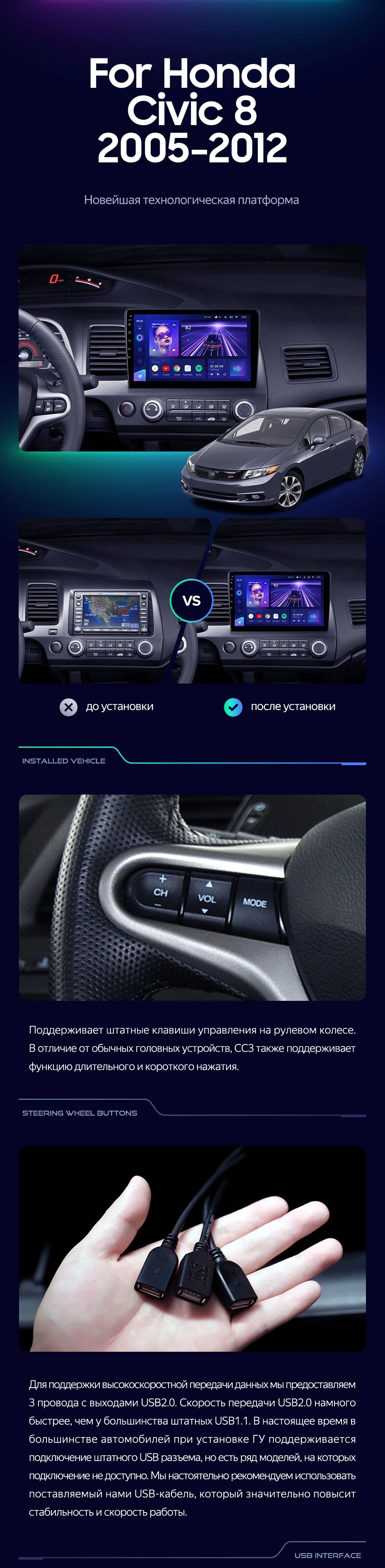 Штатная магнитола Teyes CC3 4/32 Honda Civic Hatchback (2006-2012) - купить всего за 35 970 руб. в интернет-магазине в Севастополе Teyes.com.ru. ✓ Самый лучший выбор мультимедиа ✓ Лучшая замена штатному ГУ ✓ Тел. +7 (800) 775-31-74