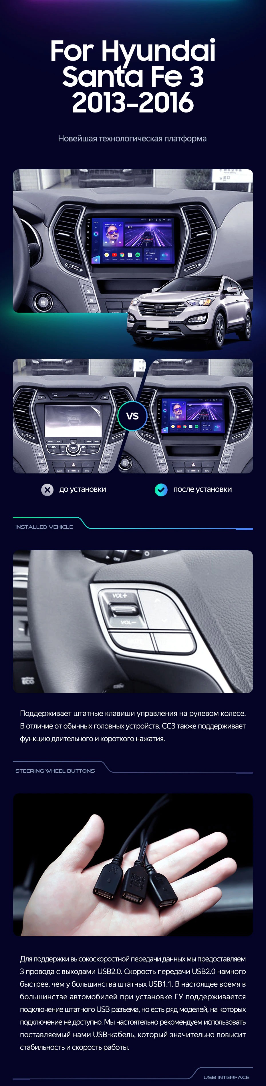 Штатная магнитола Teyes CC3 4/32 Hyundai Santa Fe 3 (2013-2016) Тип-B - купить всего за 33 530 руб. в интернет-магазине в Севастополе Teyes.com.ru. ✓ Самый лучший выбор мультимедиа ✓ Лучшая замена штатному ГУ ✓ Тел. +7 (800) 775-31-74