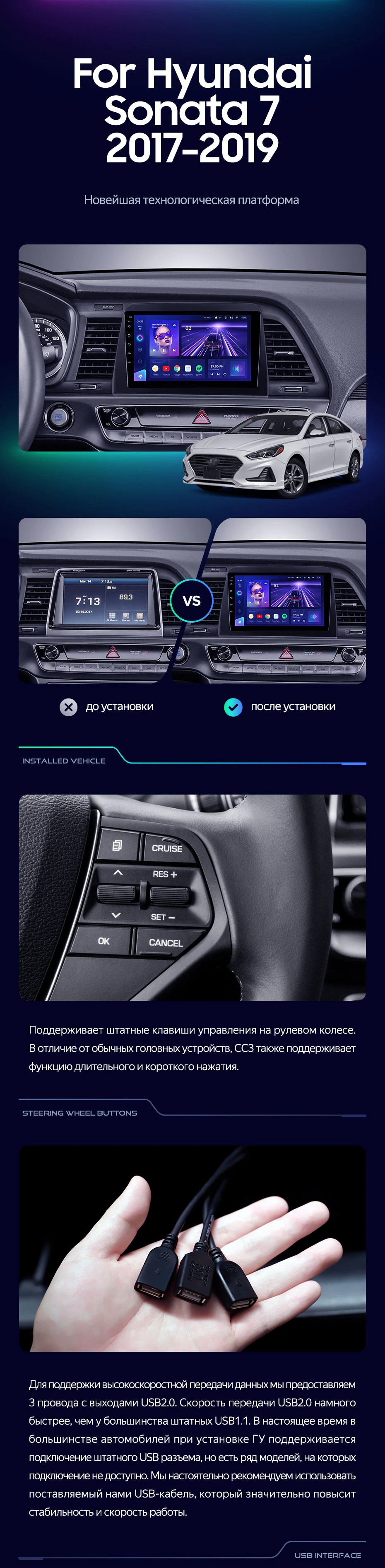 Штатная магнитола Teyes CC3 4/32 Hyundai Sonata 7 LF (2017-2019) - купить всего за 33 650 руб. в интернет-магазине в Севастополе Teyes.com.ru. ✓ Самый лучший выбор мультимедиа ✓ Лучшая замена штатному ГУ ✓ Тел. +7 (800) 775-31-74