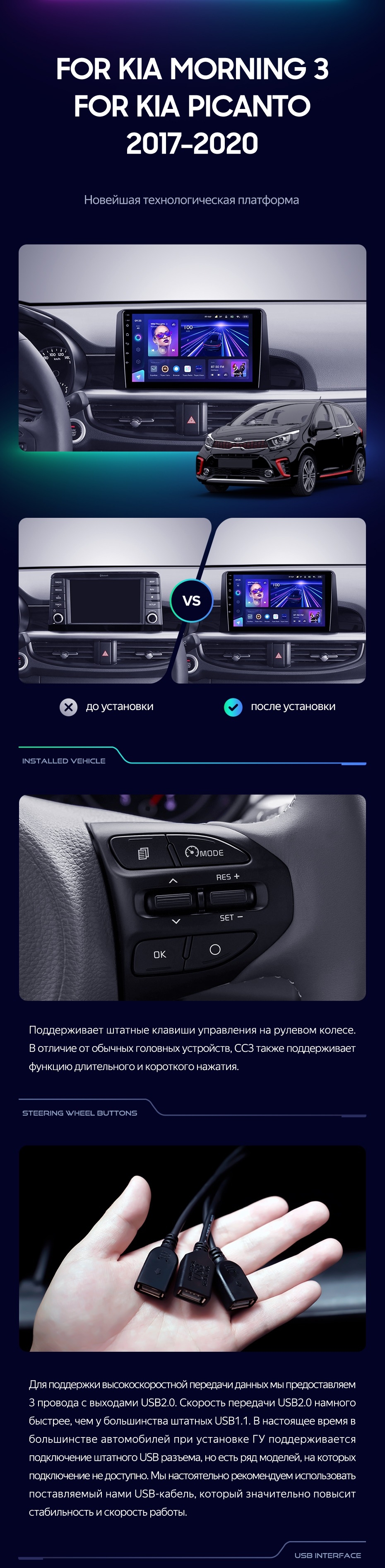 Штатная магнитола Teyes CC3 4/32 Kia Picanto (2017-2020) Тип-A - купить всего за 32 730 руб. в интернет-магазине в Севастополе Teyes.com.ru. ✓ Самый лучший выбор мультимедиа ✓ Лучшая замена штатному ГУ ✓ Тел. +7 (800) 775-31-74