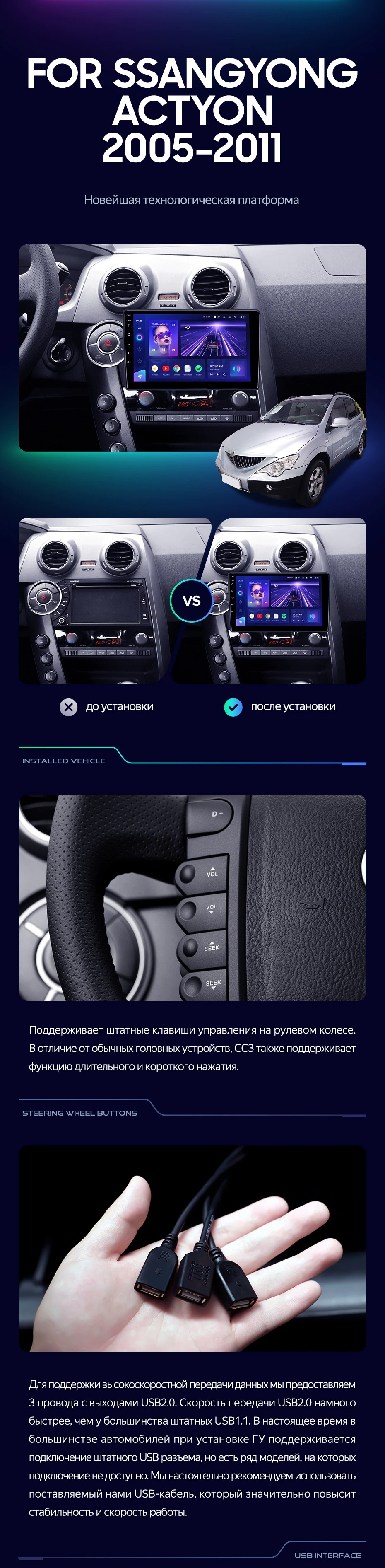 Штатная магнитола Teyes CC3 4/32 SsangYong Actyon C100 (2005-2011) - купить всего за 32 200 руб. в интернет-магазине в Севастополе Teyes.com.ru. ✓ Самый лучший выбор мультимедиа ✓ Лучшая замена штатному ГУ ✓ Тел. +7 (800) 775-31-74