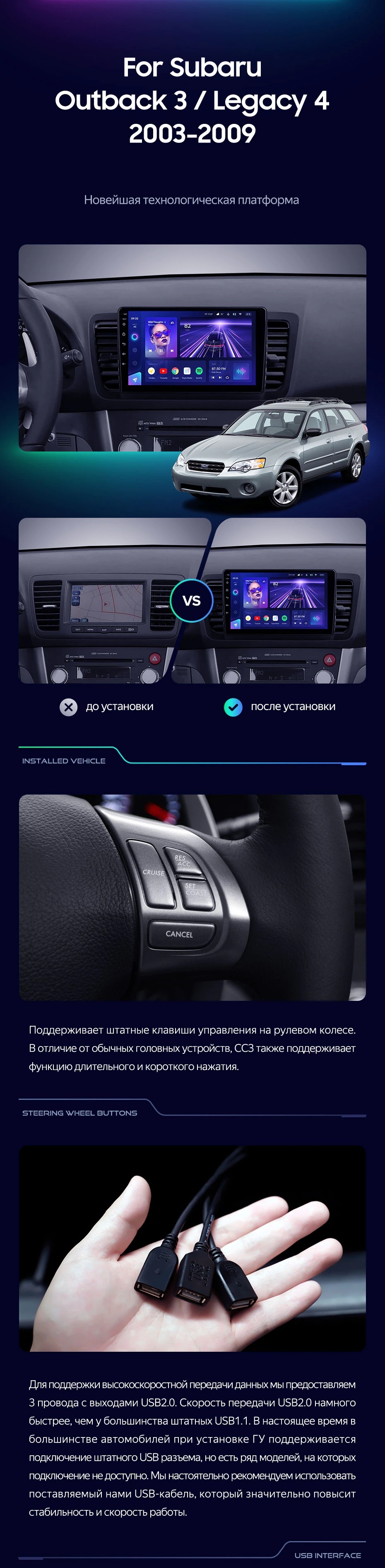 Штатная магнитола Teyes CC3 4/32 Subaru Outback 3 (2003-2009) - купить всего за 32 480 руб. в интернет-магазине в Севастополе Teyes.com.ru. ✓ Самый лучший выбор мультимедиа ✓ Лучшая замена штатному ГУ ✓ Тел. +7 (800) 775-31-74