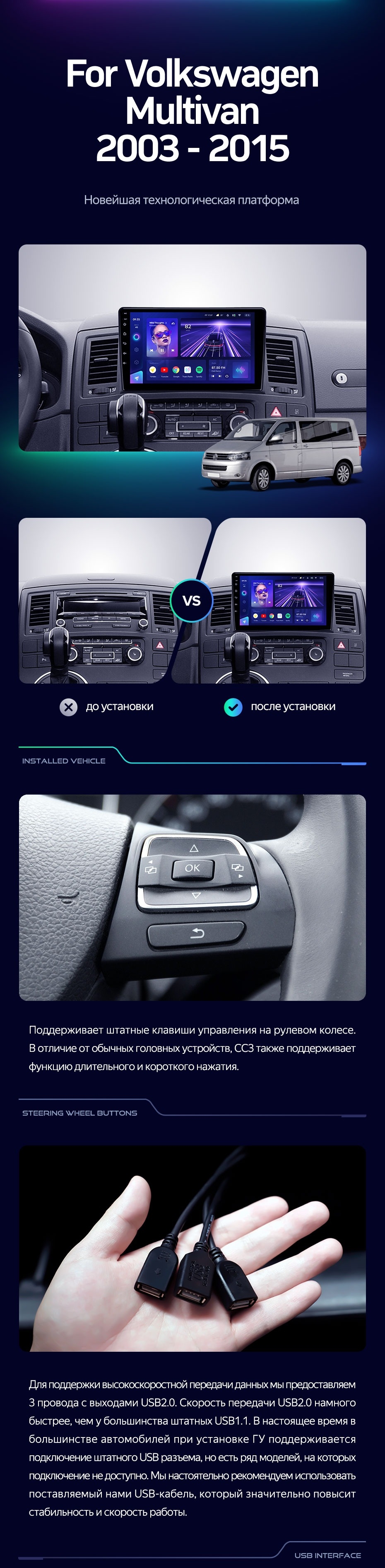 Штатная магнитола Teyes CC3 4/32 Volkswagen Multivan T5 (2003-2015) - купить всего за 33 220 руб. в интернет-магазине в Севастополе Teyes.com.ru. ✓ Самый лучший выбор мультимедиа ✓ Лучшая замена штатному ГУ ✓ Тел. +7 (800) 775-31-74