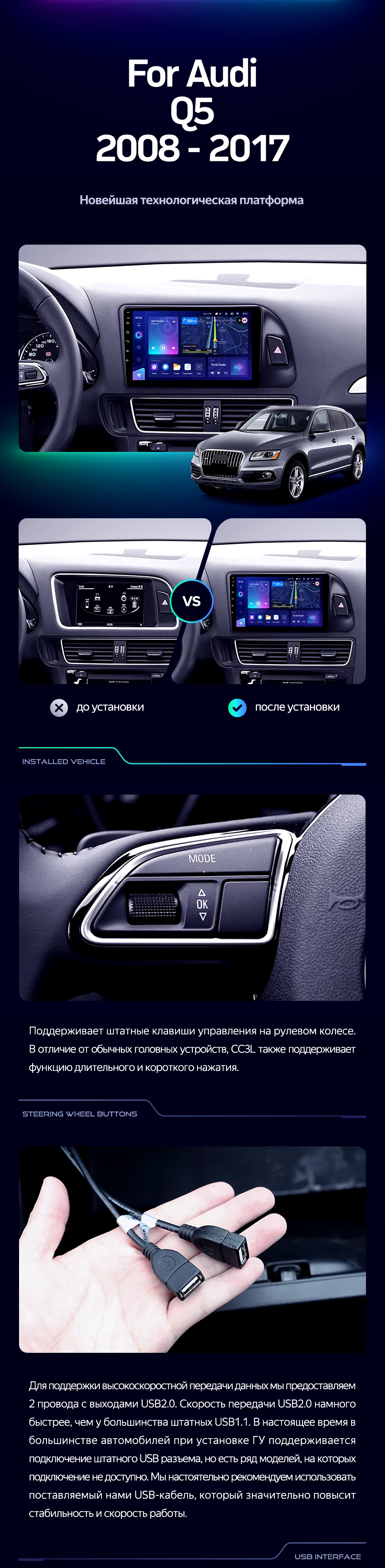 Штатная магнитола Teyes CC3L 4/32 Audi Q5 8R (2008-2017) Тип-B - купить всего за 33 270 руб. в интернет-магазине в Севастополе Teyes.com.ru. ✓ Самый лучший выбор мультимедиа ✓ Лучшая замена штатному ГУ ✓ Тел. +7 (800) 775-31-74