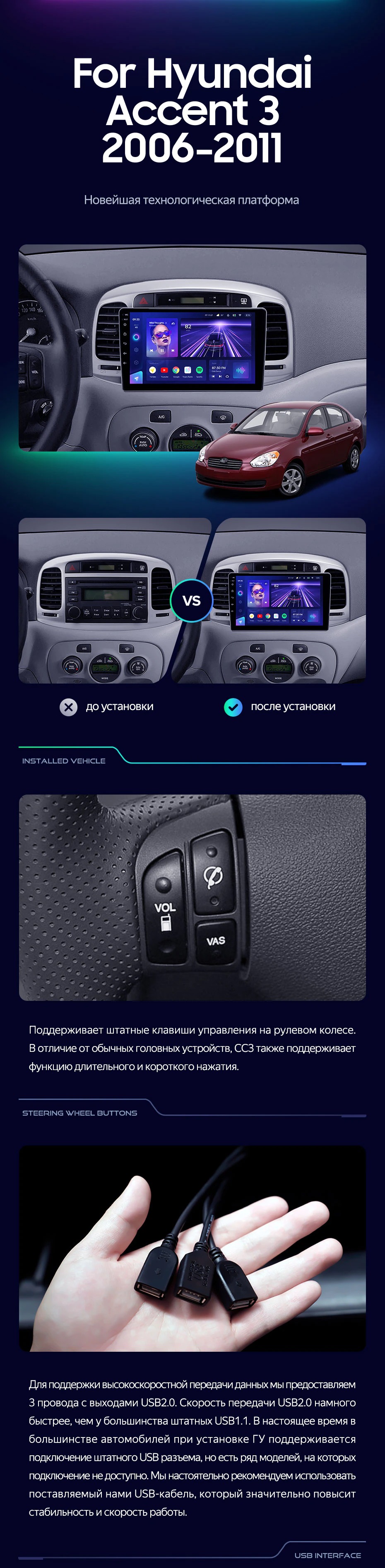 Штатная магнитола Teyes CC3L 4/32 Hyundai Accent 3 (2006-2011) - купить всего за 28 600 руб. в интернет-магазине в Севастополе Teyes.com.ru. ✓ Самый лучший выбор мультимедиа ✓ Лучшая замена штатному ГУ ✓ Тел. +7 (800) 775-31-74