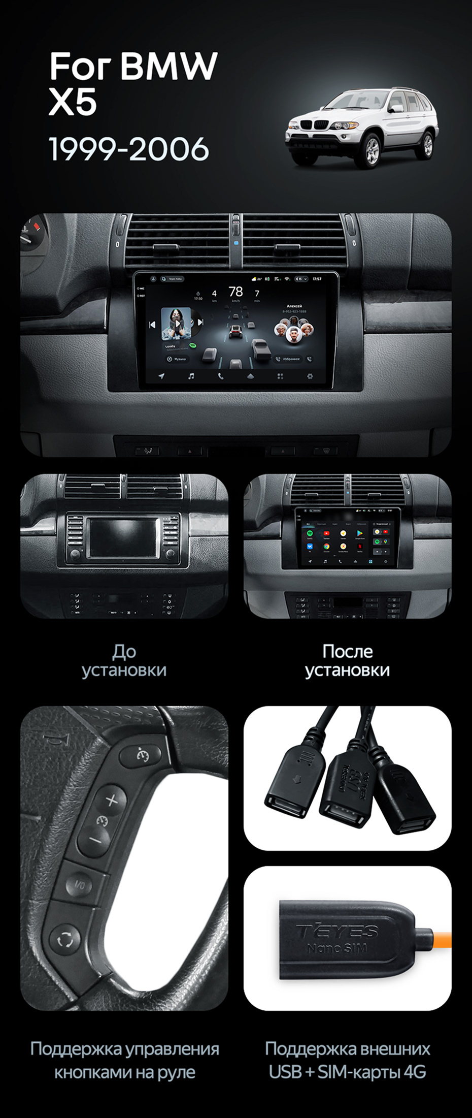 Штатная магнитола Teyes CC4 Pro 12/256 BMW X5 E39 E53 (1999-2006) - купить всего за 70 500 руб. в интернет-магазине в Севастополе Teyes.com.ru. ✓ Самый лучший выбор мультимедиа ✓ Лучшая замена штатному ГУ ✓ Тел. +7 (800) 775-31-74