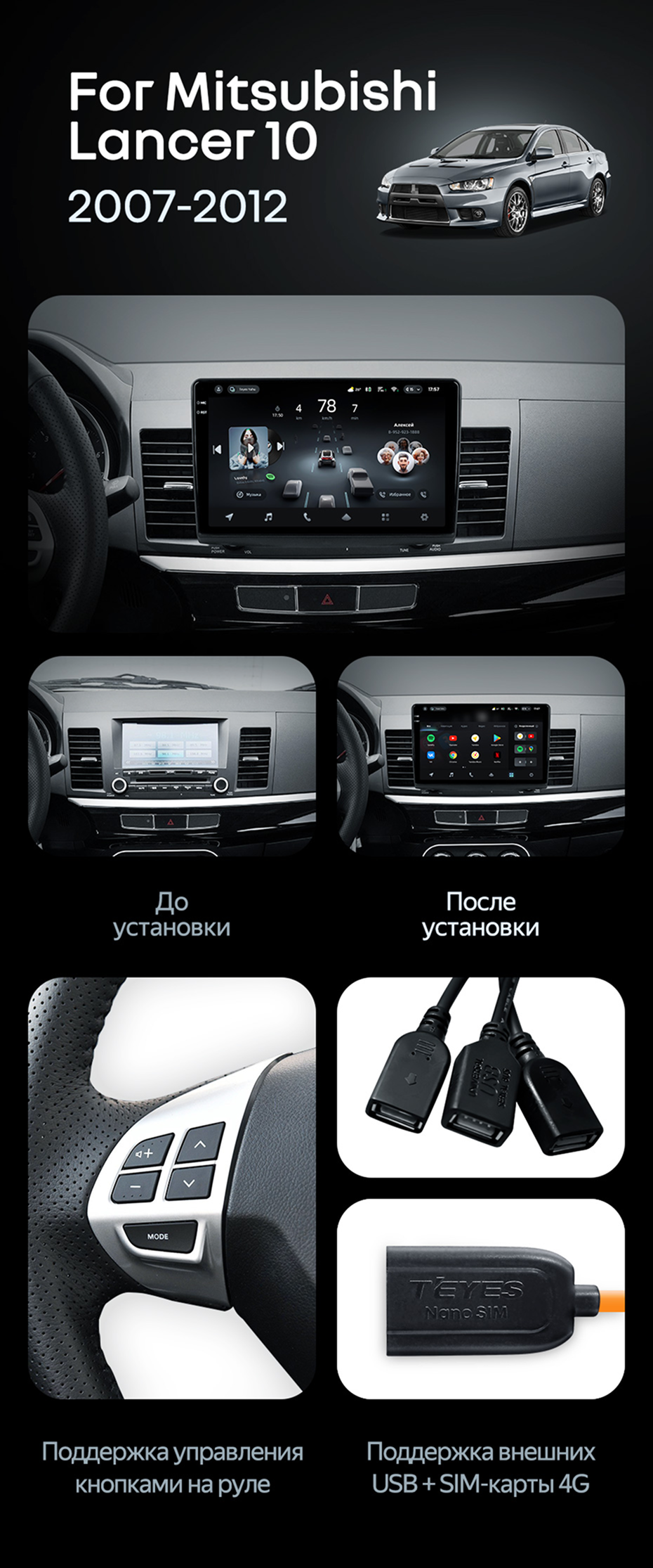 Штатная магнитола Teyes CC4 Pro 12/256 Mitsubishi Lancer 10 CY (2007-2012) Тип-B - купить всего за 70 850 руб. в интернет-магазине в Севастополе Teyes.com.ru. ✓ Самый лучший выбор мультимедиа ✓ Лучшая замена штатному ГУ ✓ Тел. +7 (800) 775-31-74