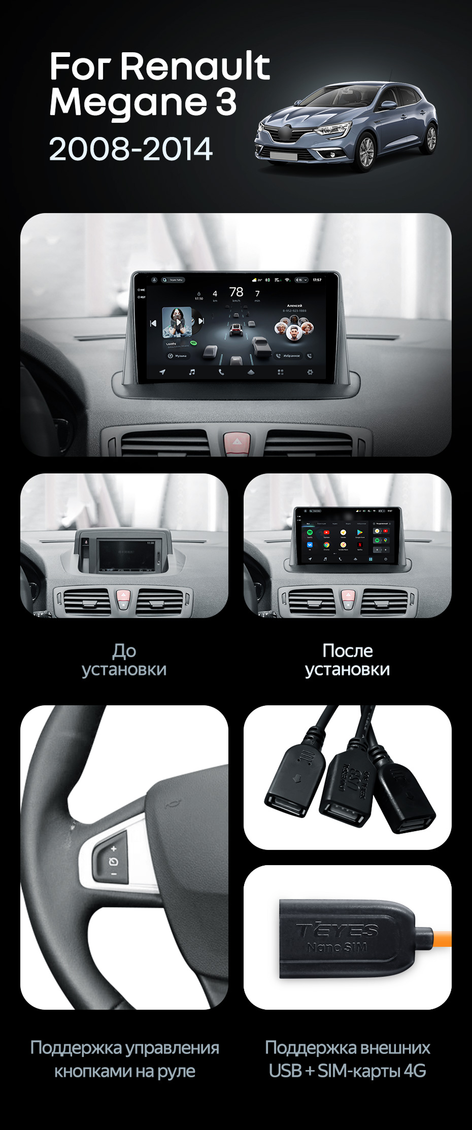 Штатная магнитола Teyes CC4 Pro 12/256 Renault Megane 3 (2008-2014) - купить всего за 70 000 руб. в интернет-магазине в Севастополе Teyes.com.ru. ✓ Самый лучший выбор мультимедиа ✓ Лучшая замена штатному ГУ ✓ Тел. +7 (800) 775-31-74