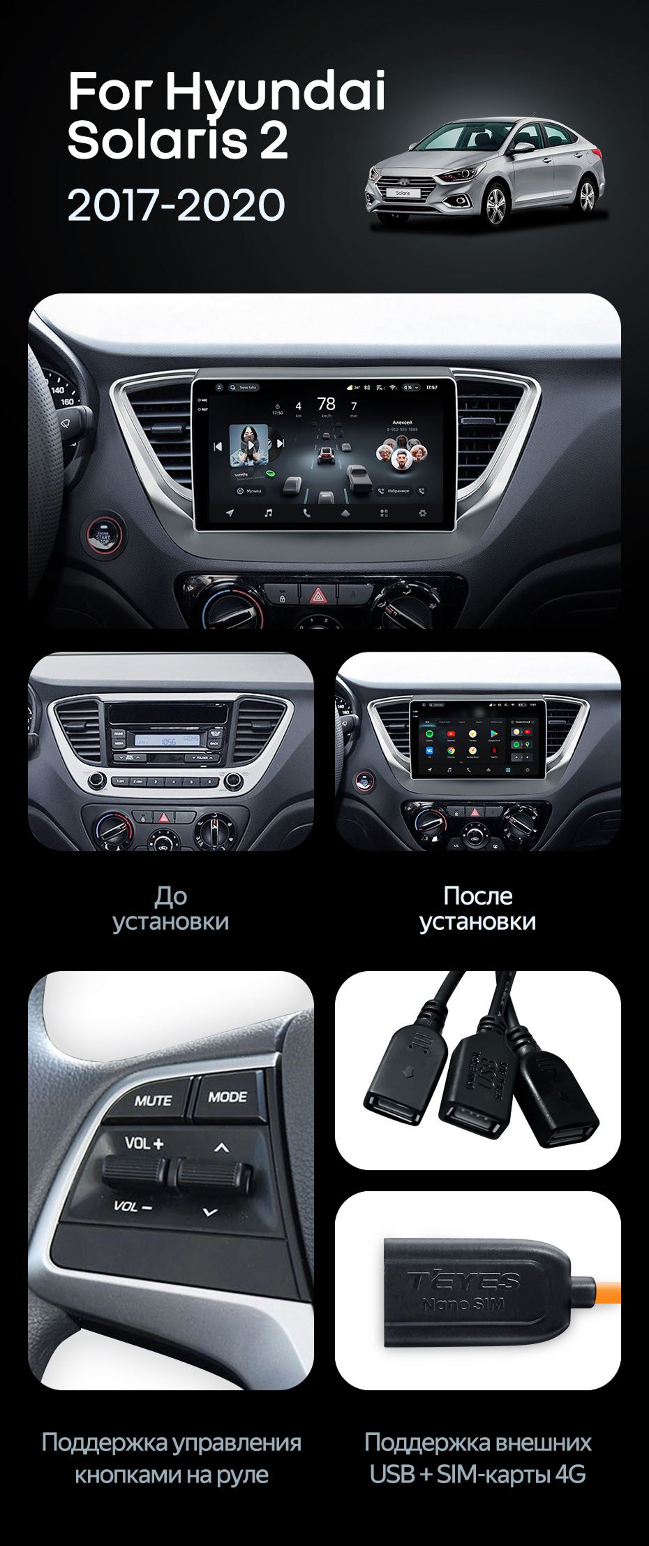 Штатная магнитола Teyes CC4 Pro 8/128 Hyundai Solaris 2 (2017-2020) F1 Тип-A - купить всего за 58 080 руб. в интернет-магазине в Севастополе Teyes.com.ru. ✓ Самый лучший выбор мультимедиа ✓ Лучшая замена штатному ГУ ✓ Тел. +7 (800) 775-31-74