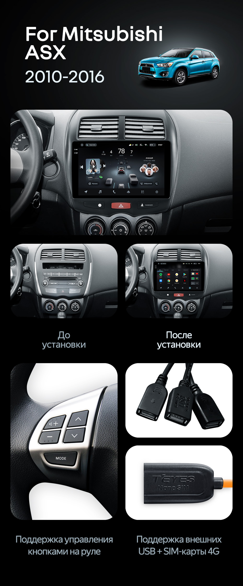 Штатная магнитола Teyes CC4 Pro 8/128 Mitsubishi ASX 1 (2010-2016) Тип-A - купить всего за 58 370 руб. в интернет-магазине в Севастополе Teyes.com.ru. ✓ Самый лучший выбор мультимедиа ✓ Лучшая замена штатному ГУ ✓ Тел. +7 (800) 775-31-74