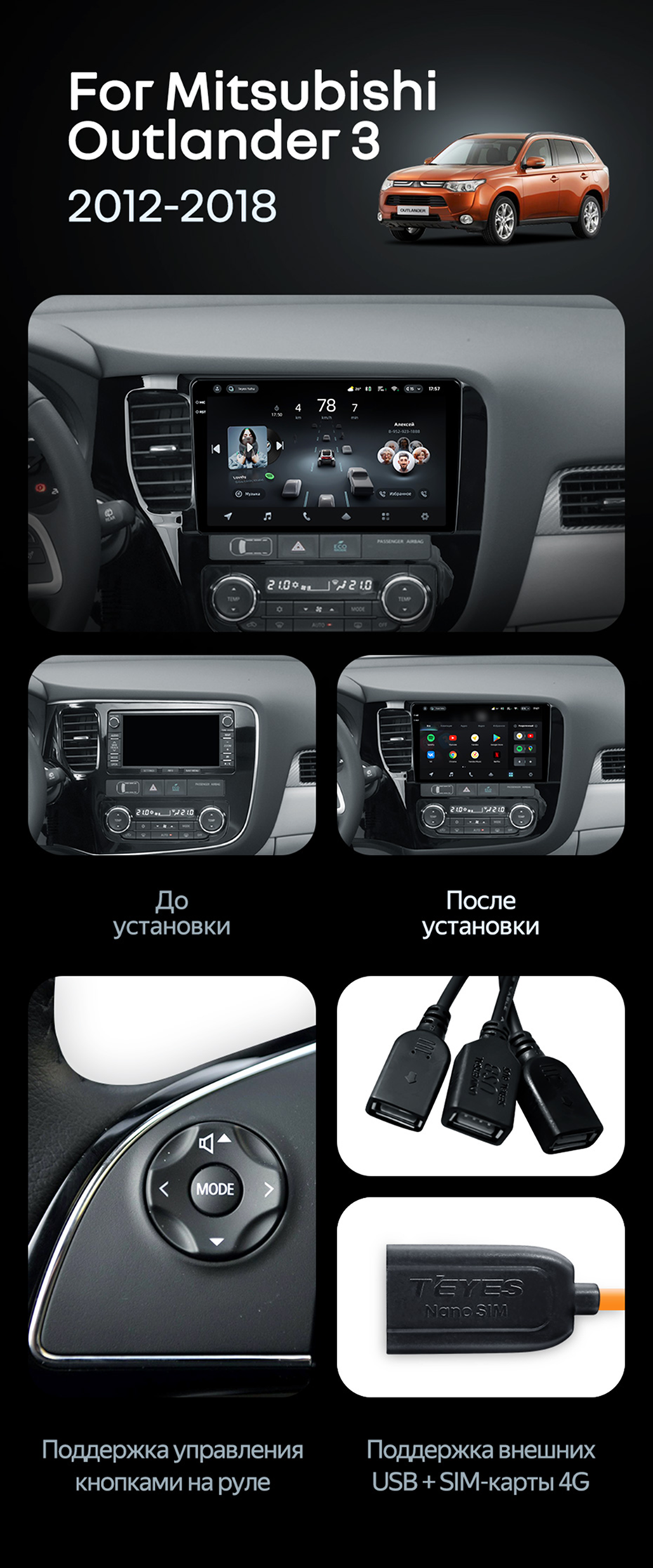 Штатная магнитола Teyes CC4 Pro 8/128 Mitsubishi Outlander 3 (2012-2018) Тип-A - купить всего за 58 580 руб. в интернет-магазине в Севастополе Teyes.com.ru. ✓ Самый лучший выбор мультимедиа ✓ Лучшая замена штатному ГУ ✓ Тел. +7 (800) 775-31-74