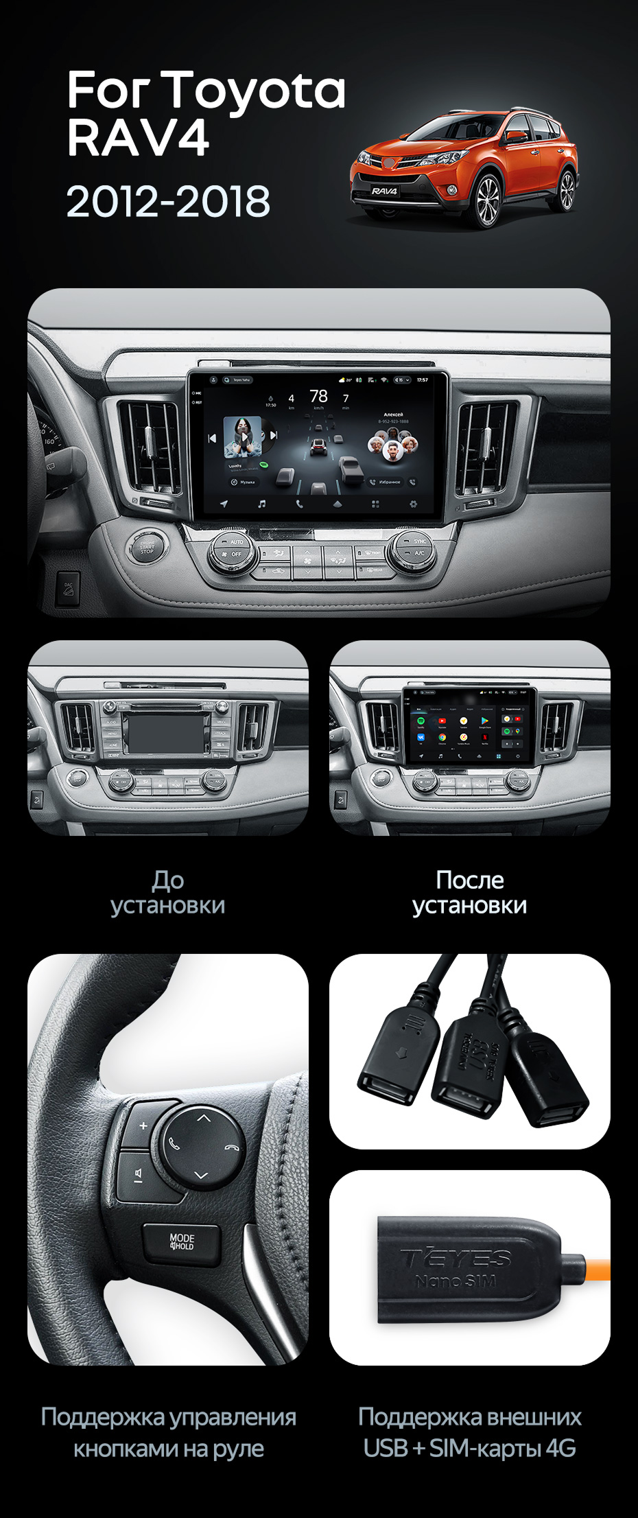 Штатная магнитола Teyes CC4 Pro 8/128 Toyota RAV4 (2012-2018) - купить всего за 58 820 руб. в интернет-магазине в Севастополе Teyes.com.ru. ✓ Самый лучший выбор мультимедиа ✓ Лучшая замена штатному ГУ ✓ Тел. +7 (800) 775-31-74