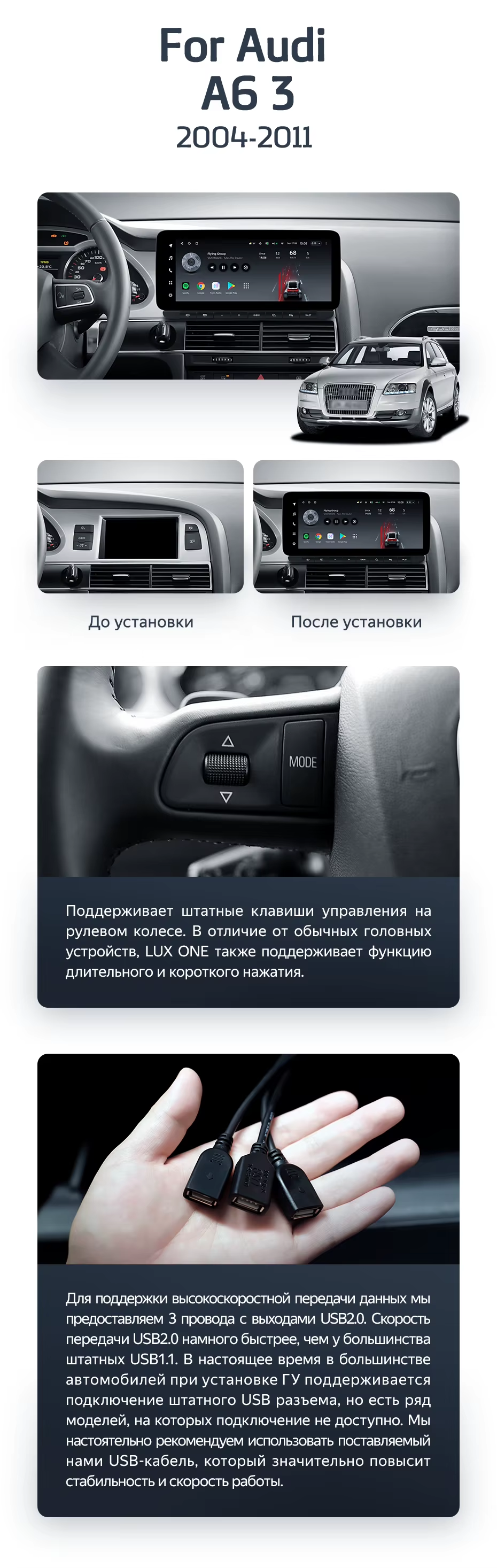 Штатная магнитола Teyes LUX ONE 4/64 Audi A6 3 C6 (2004-2011) - купить всего за 43 400 руб. в интернет-магазине в Севастополе Teyes.com.ru. ✓ Самый лучший выбор мультимедиа ✓ Лучшая замена штатному ГУ ✓ Тел. +7 (800) 775-31-74