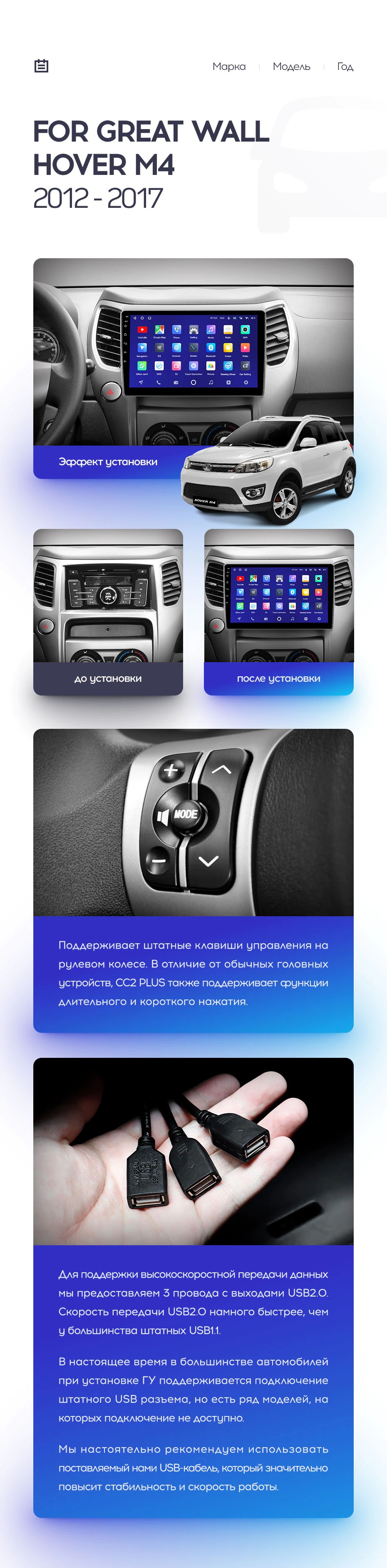 Полный комплект установки магнитолы Teyes с рамкой и проводкой можно выбрать в каталоге штатных магнитол Great Wall Hover M4 (2012-2017).